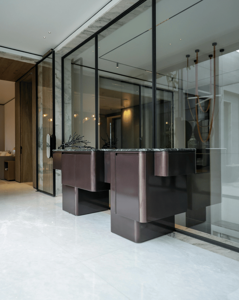 Pemilihan material kaca dan aksesoris sesuai kebutuhan teknis dan desain interior.