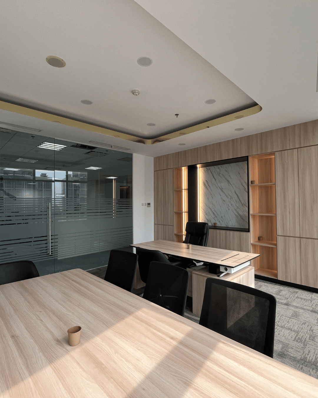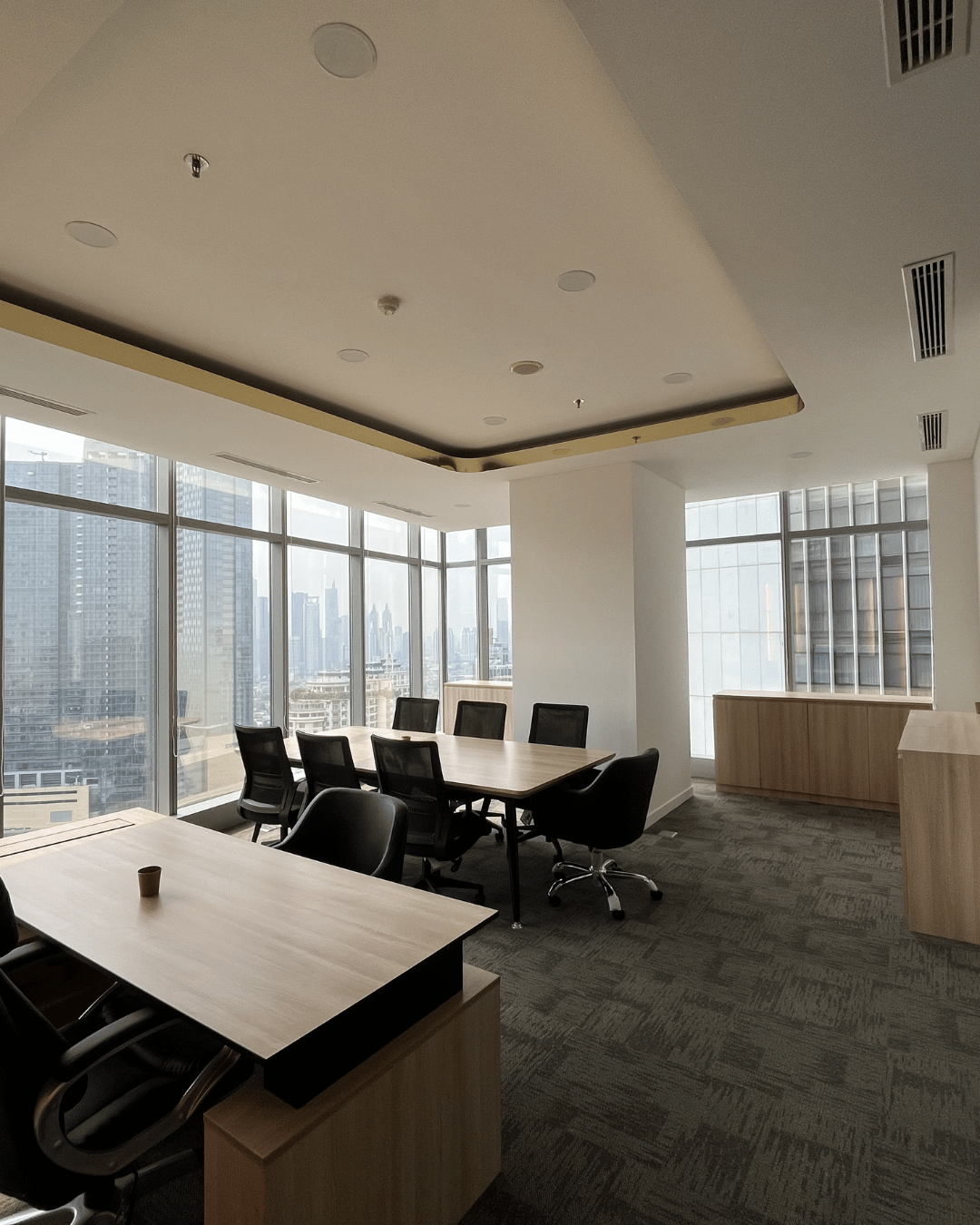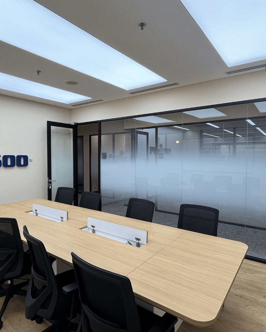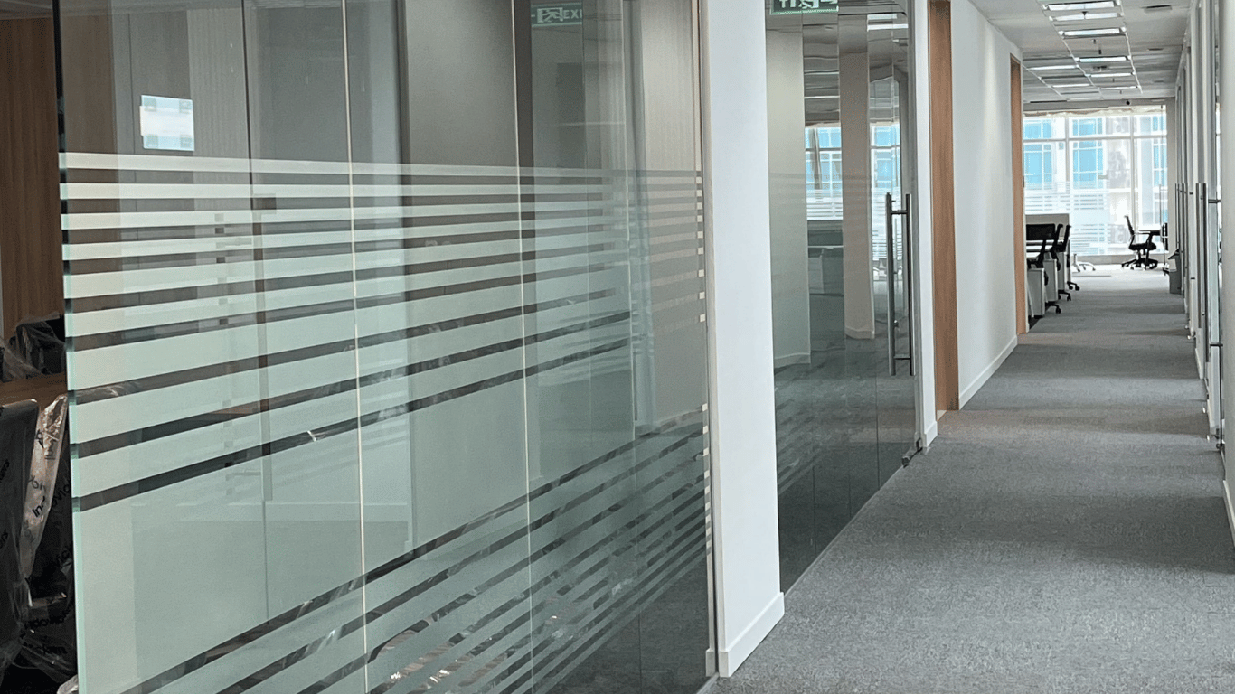 Jasa pemasangan partisi kaca kantor untuk ruang meeting, interior komersial, dan area kerja modern.
