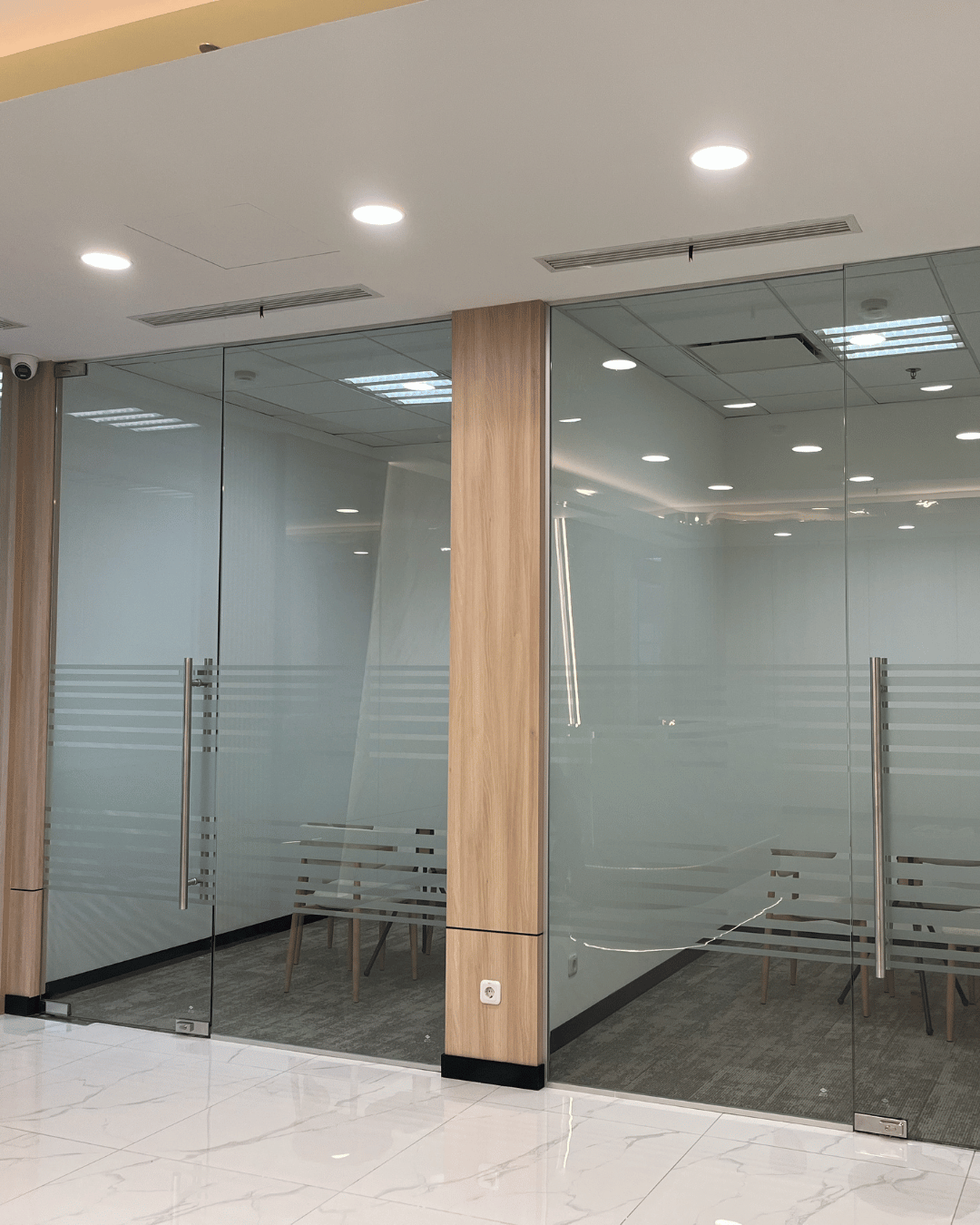 Pemasangan profesional dengan hasil rapi dan presisi untuk pintu kaca maupun partisi kaca kantor.