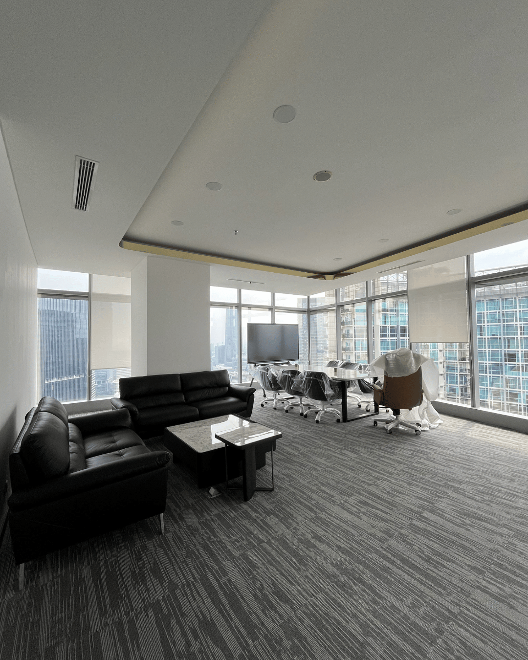 Instalasi partisi kaca kantor untuk ruang meeting dan interior komersial dengan hasil presisi.